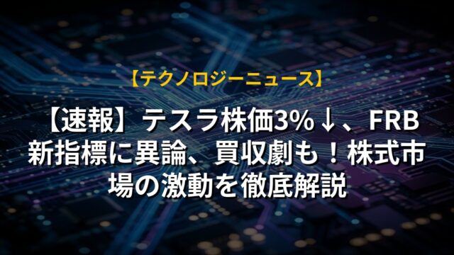 【速報】テスラ株価3%↓、FRB新指標に異論、買収劇も!株式市場の激動を徹底解説
