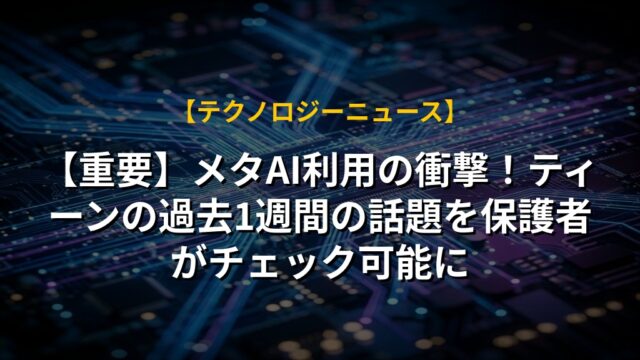 【重要】メタAI利用の衝撃!ティーンの過去1週間の話題を保護者がチェック可能に