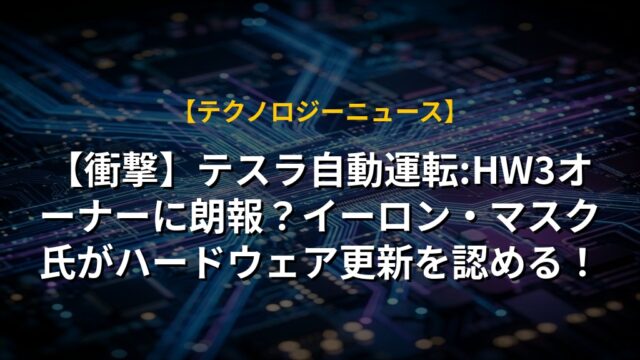 【衝撃】テスラ自動運転:HW3オーナーに朗報?イーロン・マスク氏がハードウェア更新を認める!