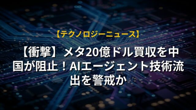 【衝撃】メタ20億ドル買収を中国が阻止!AIエージェント技術流出を警戒か