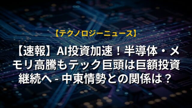 【速報】AI投資加速!半導体・メモリ高騰もテック巨頭は巨額投資継続へ – 中東情勢との関係は?