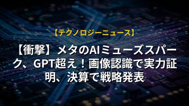 【衝撃】メタのAIミューズスパーク、GPT超え!画像認識で実力証明、決算で戦略発表